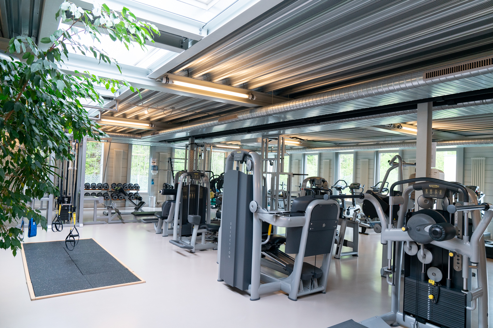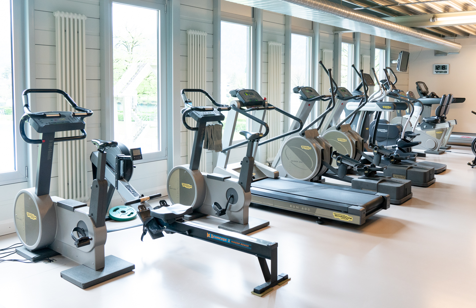 Das Fitness Bödelibad ist klimatisiert, bietet eine grosszügige Raumaufteilung, eine angenehme Atmosphäre und eine tolle Aussicht.